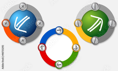 Set of three colored frames and arrows