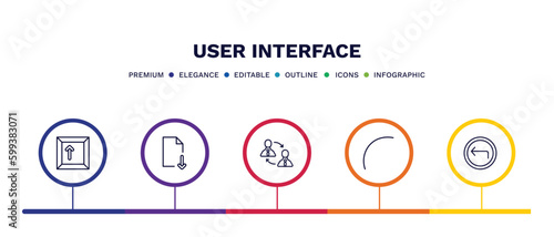 set of user interface thin line icons. user interface outline icons with infographic template. linear icons such as key up, downloading, job transition, curve line, arrow address back vector.