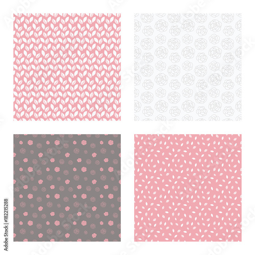 set of vector seamless floral and leaf patterns, abstract background illustrations
