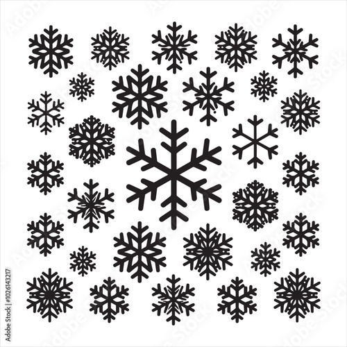 set of vector snowflake silhouette