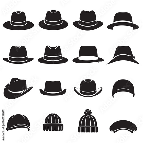 set of vector various style, beach hat silhouette
