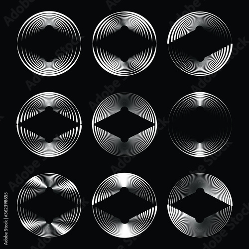Set of white vector abstract stripes. Circle form. Design element for logo, tattoo, sign, symbol, web pages, prints, posters, template, monochrome pattern and abstract background