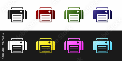 Set Printer icon isolated on black and white background. Vector