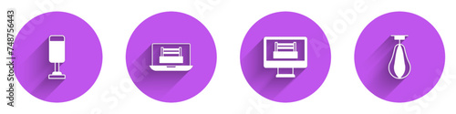 Set Punching bag, Boxing ring, and icon with long shadow. Vector