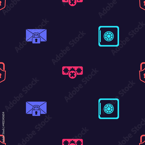 Set Safe, Mail message lock password, Password protection and Lock on seamless pattern. Vector.