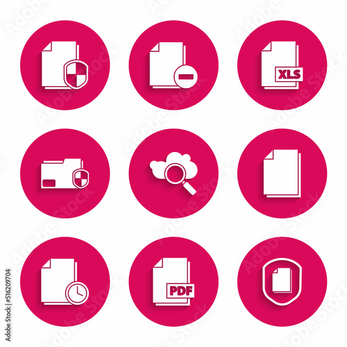 Set Search cloud computing, PDF file document, Document protection concept, with clock, folder, XLS and icon. Vector