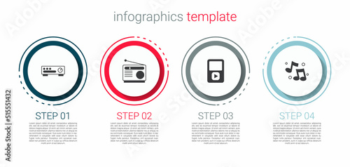 Set Sound mixer controller, Radio, Music player and note, tone. Business infographic template. Vector