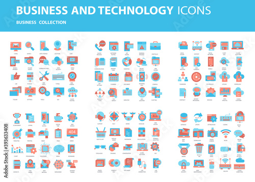 Set vector icons with elements for mobile concepts and web apps. Business and marketing, programming, data management, internet connection, social network, computing, information. Vector