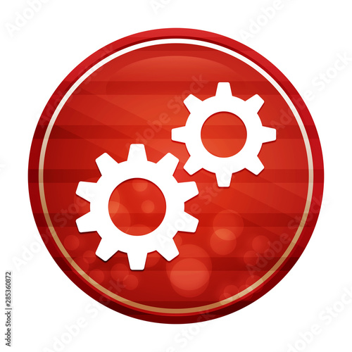 Settings process icon realistic diagonal motion red round button illustration