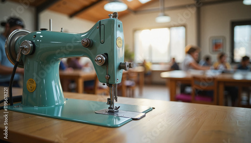 Sewing machine in vibrant workshop, honoring textile craftsmanship