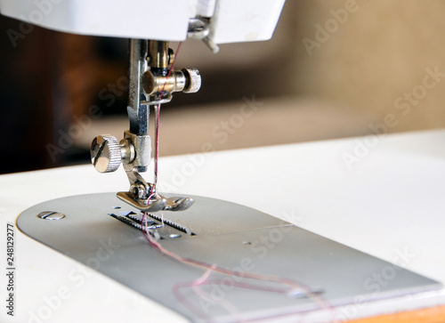 Sewing machine with needle and thread, closeup