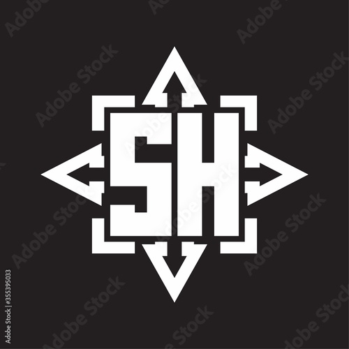 SH Logo monogram with rounded arrows shape design template