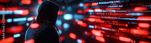 Shadowy Figure Representing Hackers in Digital Environment with Data Streams