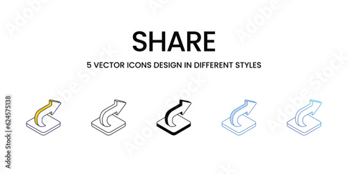 Share Icon Design in Five style with Editable Stroke. Line, Solid, Flat Line, Duo Tone Color, and Color Gradient Line. Suitable for Web Page, Mobile App, UI, UX and GUI design.