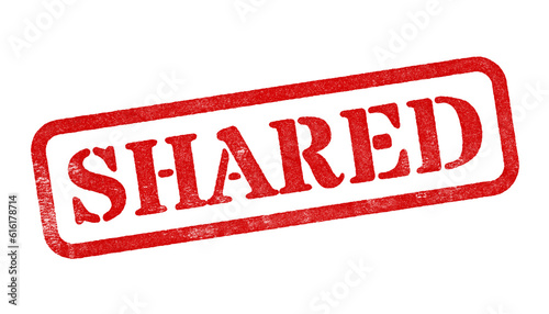 Shared red rubber stamp isolated on transparent background with distressed texture effect