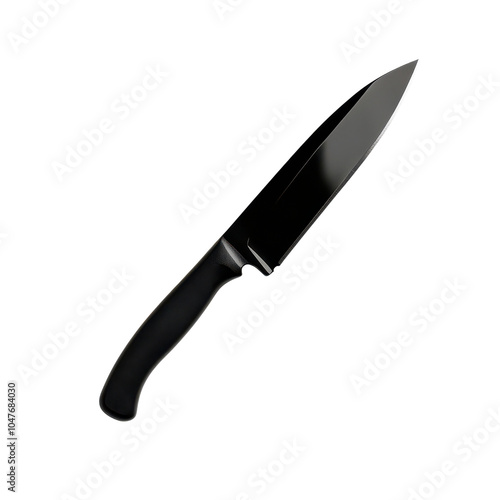 Sharp black kitchen knife isolated on white background.