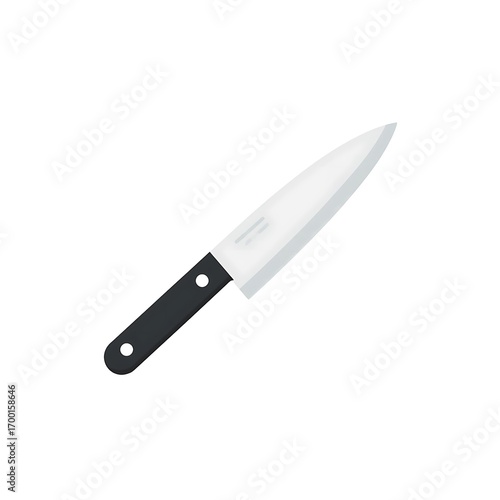 Sharp chef knife with black handle on white background