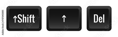 Shift, Del. Delete, arrow up. Key combination. Keyboard, control, computer, shortcut, laptop, functional, input device, peripheral, enter the text, typing, type, hotkeys, layout, language, qwerty