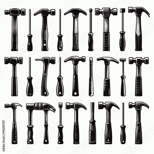 shiloutte Hammer set vector illustration