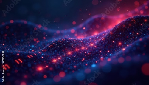 Shimmering data streams, binary code landscape, communication, particles, binary