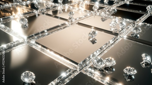 Shimmering Diamonds and Glass Surface with Reflections and Light
