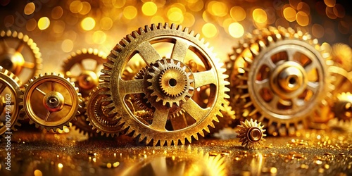 Shimmering Gold Gear on a Stylish Background for Luxury and Industry Conceptual Imagery