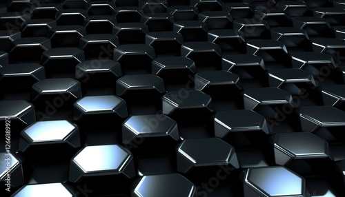 Shiny black hexagons pattern perspective effect. Usable in technology, business & wallpaper designs