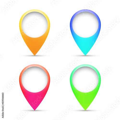 Shiny colorful realistic map pointers vector design on white background