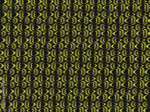 Shiny dark yellow background, with unique ornaments. Modern 3d pattern. Vector illustration