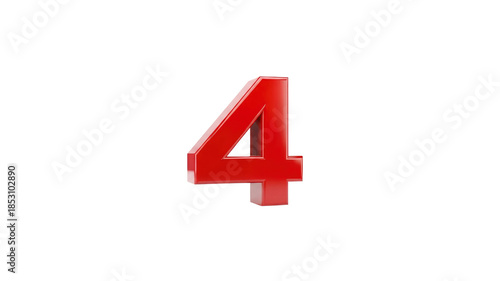 Shiny red number 4 on Transparent Background