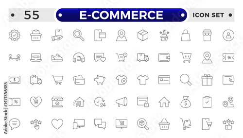 Shopping outline icon Set. Vibrant and engaging icons for enhancing e-commerce platforms, perfect for product listings, cart management, checkout processes to elevate the online shopping experience.