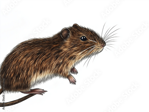 Short-tailed Field Vole (Microtus subterraneus) - A biologically accurate hand-drawn illustration with its compact body, dark fur, and short tail, isolated on white