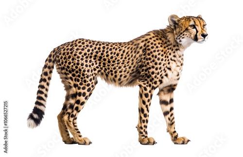 Side profile of graceful cheetah with distinct spots, isolated on transparent background, African wildlife, fastest animal, big cat, nature conservation, safari icon, unique pattern