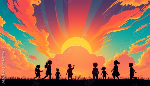 Silhouette Children Sunset