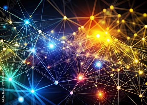 Silhouette Network: Glowing Nodes & Abstract Connections - Stock Photo