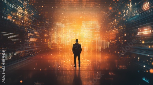 Silhouette of Man in Digital World