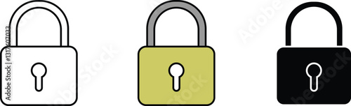 Silhouette Secure Padlock Icon Set for Privacy and Cybersecurity