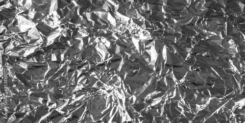 Silver foil background with shiny crumpled surface for texture background