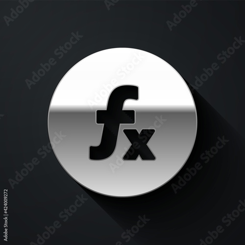 Silver Function mathematical symbol icon isolated on black background. Long shadow style. Vector