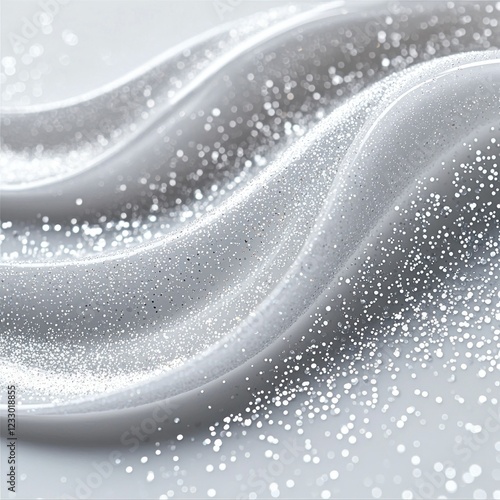 Silver glitter gel waves on white surface, background texture use for cosmetics