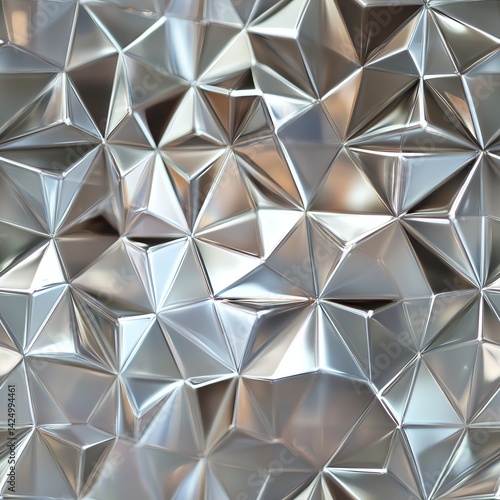 Silver Metallic Polygon Background with Reflective Surface for Modern Designs