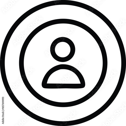 Simple black and white icon representing a user profile within concentric circles