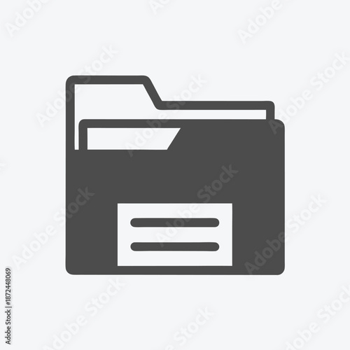 Simple black and white icon shows an open document folder for organizing data