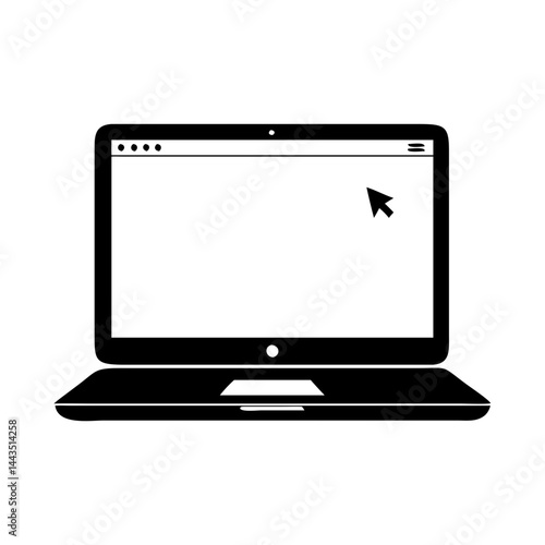 Simple Black and White Laptop Illustration with a Cursor on the Screen