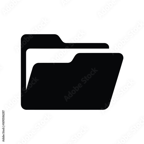 Simple black folder icon with documents on white paper file