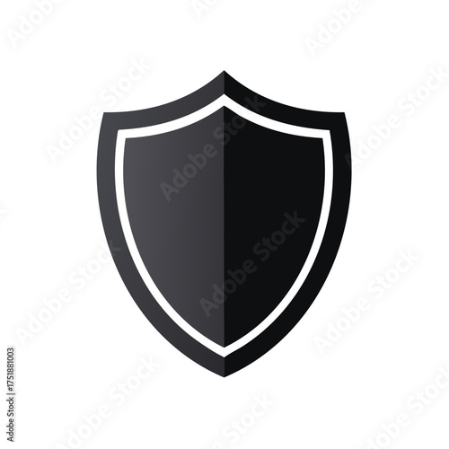 Simple black shield icon representing security protection and safety Modern flat design graphic element