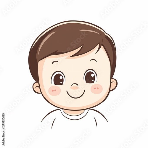Simple design of a cute cartoon toddler with simple lines on a white background, captured in a minimalist high-definition style.