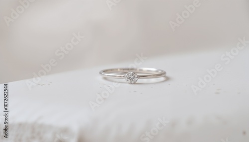 Simple elegant silver ring with a sparkling gemstone on soft background