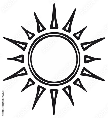 Simple Graphic Black and White Sun with Sharp Rays Summer Heat Symbol