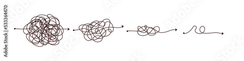 Simple line and complex easy way. Scribble doodle chaos mindset. Problem solving, difficult line. Vector hand drawn concept path